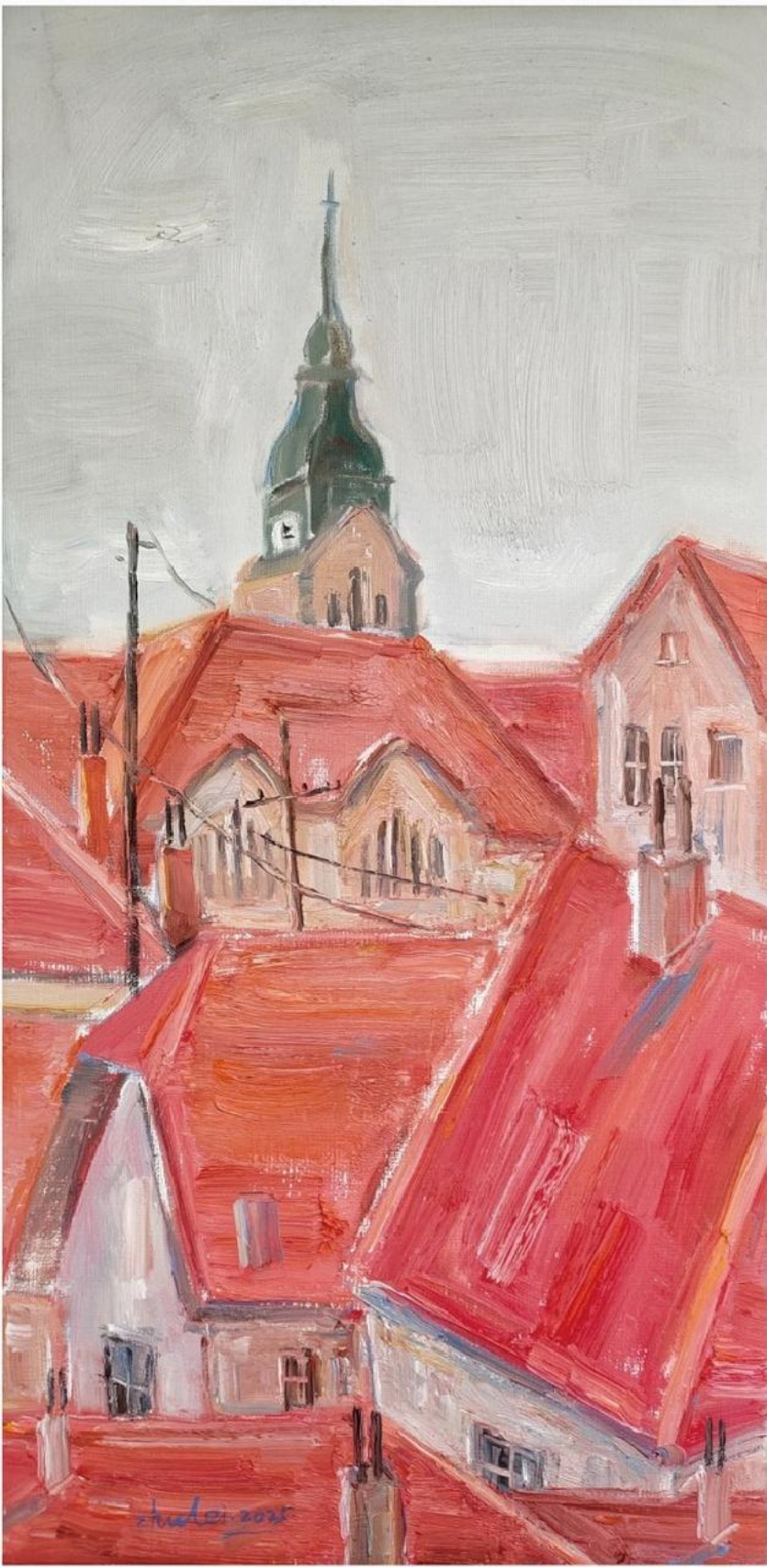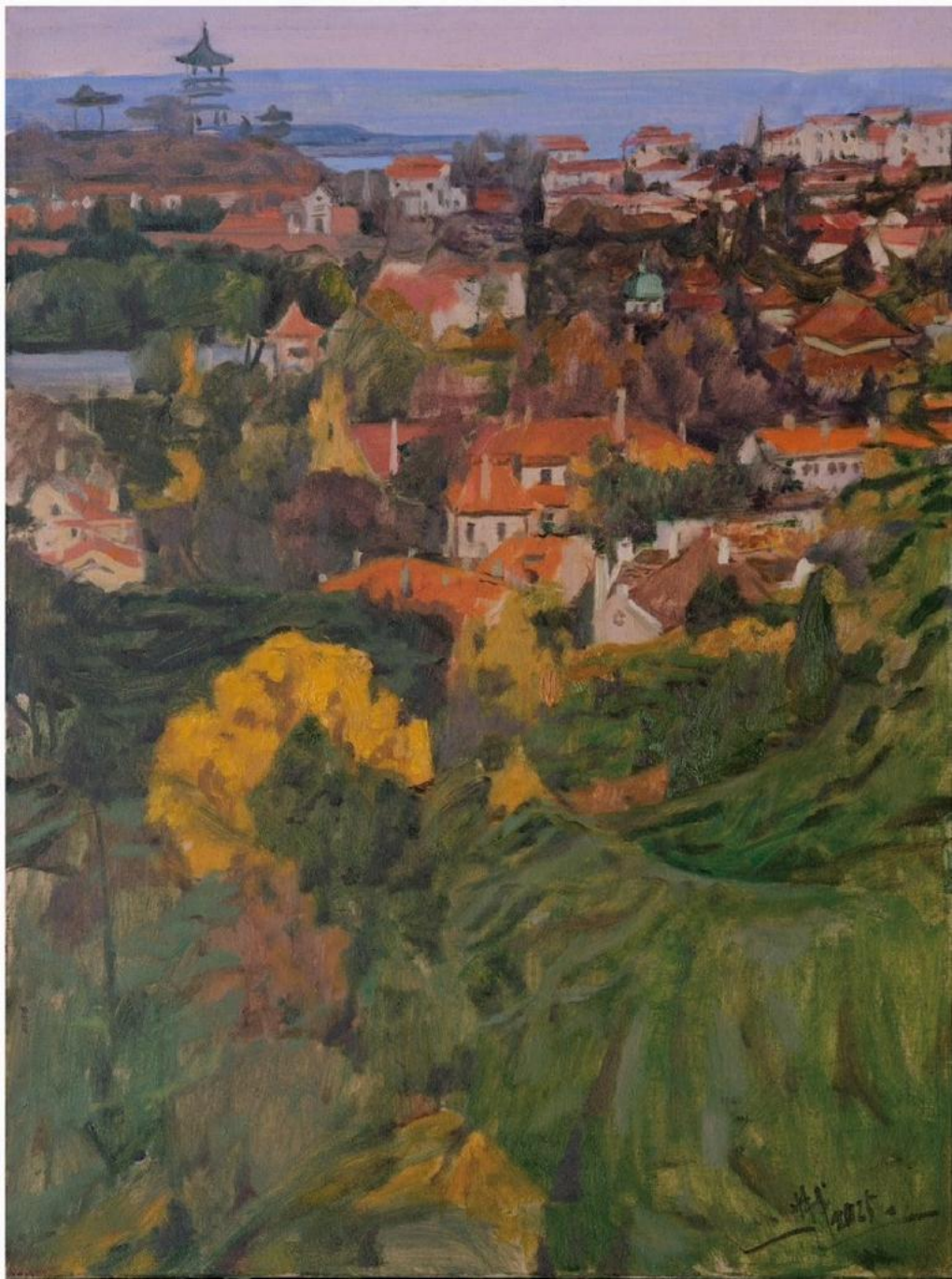 此次展览,源自驻青高校的女油画教师们对于青岛的城之爱、师之敬和教之责。她们循先贤足迹,以脚步丈量青岛的街巷、山海,以心灵探寻岛城美之内因,感慨康有为“青岛海山万千绿,怀人落日更登台”的美之奔赴;亦曾悟得闻一多“乘船远望一点青,万顷巨涛中沉浮”的心之广阔;更加敬念蔡元培当年坐镇国立青岛大学提出“兼容并蓄”办学方针的教育之志。艳羡沈从文写作之余 “一个人到青岛那个高处的教堂门前,坐在石阶上看云,看海,看教堂石墙上挂的薜萝。”(沈从文)刘海粟来青岛时写下“春风满座花如海,秋水连云月在天”的句子,并动情地说“我爱青岛” 。时序流转,百年倏忽。今日之我们,亦深爱青岛。爱蓝天碧海,绿树红瓦的天然之姿,爱群贤毕至、少长云集、开放包容的人文之境。今日之青岛,远观有旭日逐浪、晚霞铺锦的自然壮美,近读有曾被先贤目光轻抚过的时光旧迹。六位高校女教师,她们以女性视角,从城市、艺术、教育三重维度,回望历史,对话城市,为其代言。在明净如妆的秋季,提着画箱登山望海、穿巷过市,将往日风华、今日烟火凝于笔端,驻于画面,定格于永恒 。