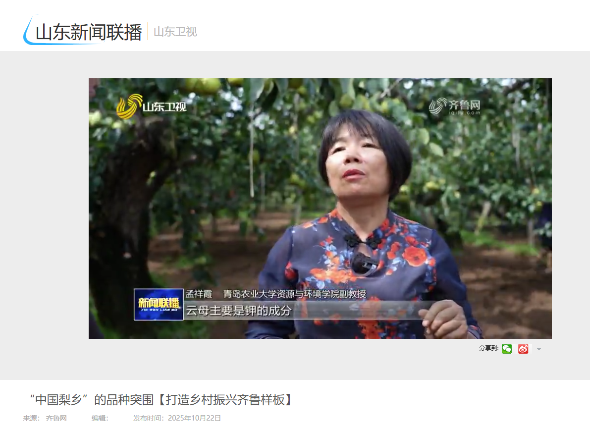 【编者按】10 月 22 日,山东卫视“山东新闻联播”以《“中国梨乡” 的品种突围【打造乡村振兴齐鲁样板】》为题报道了青岛农业大学助力 “中国梨乡” 开展品种突围,推动莱阳当地梨产业升级,为乡村振兴齐鲁样板打造注入高校力量的相关事迹。
