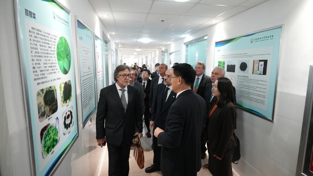 当日上午,代表团一行来到青岛农业大学,重点考察了草业学院。乌方代表对学校在饲草育种及AI技术赋能草地管理方面取得的成就表示高度赞赏。冈萨雷斯表示,期待将中国在草食畜产品精深加工及智慧草地管理方面的先进技术引入乌拉圭,助力当地牧民实现更高效、更科学的养殖。
