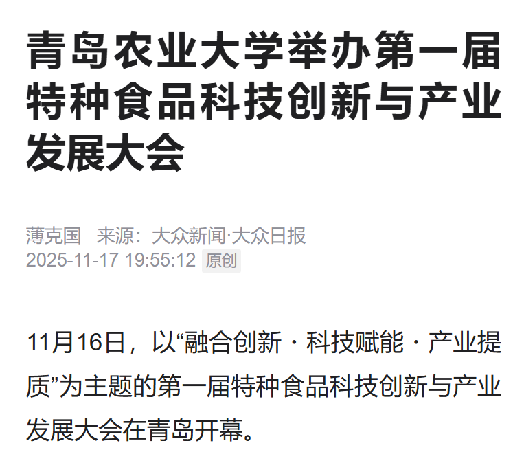 众新闻·大众日报:青岛农业大学举办第一届特种食品科技创新与产业发展大会