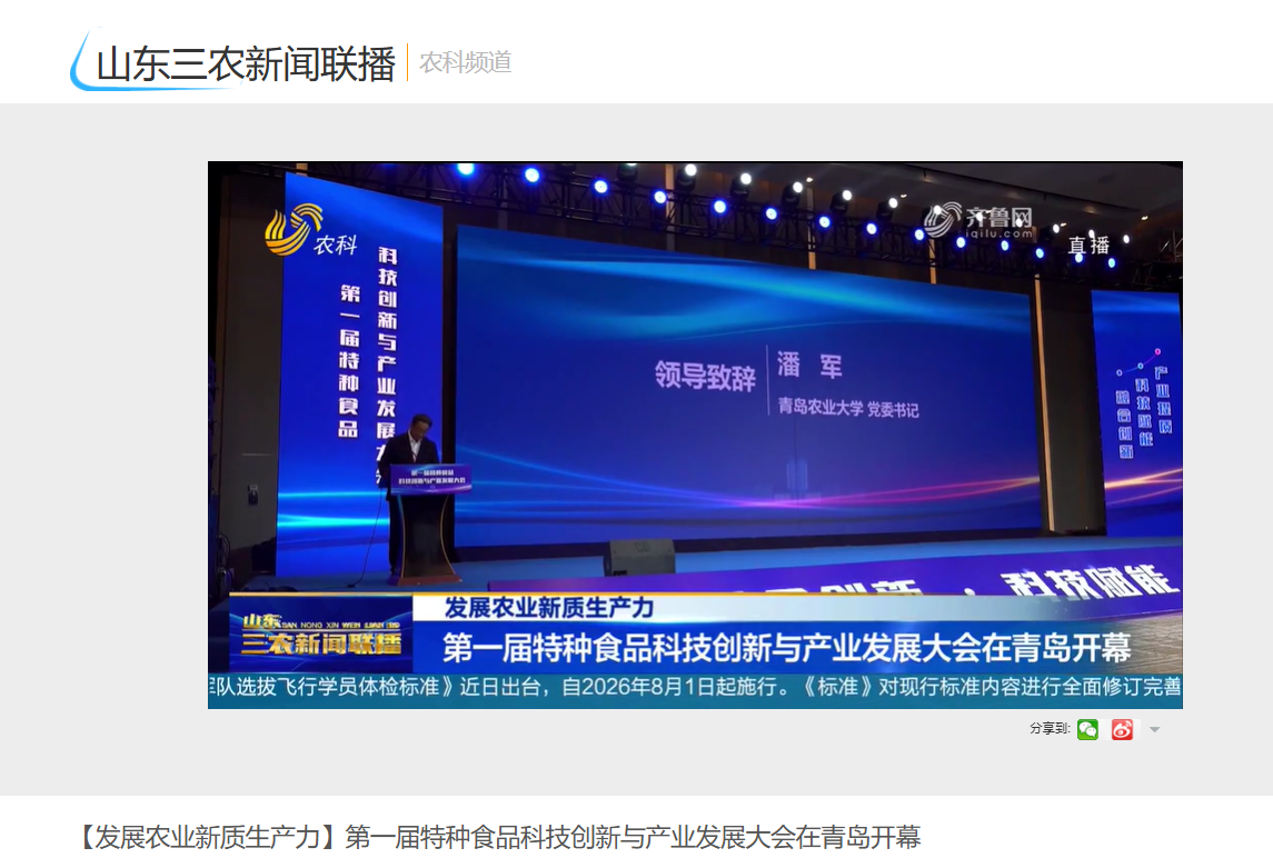 山东三农新闻联播:【发展农业新质生产力】第一届特种食品科技创新与产业发展大会在青岛开幕