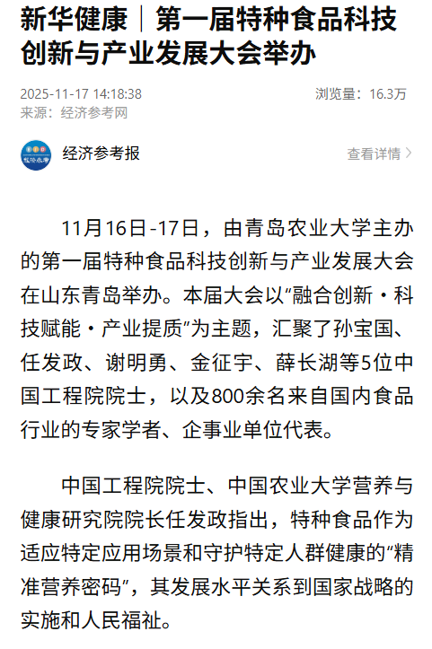 大众·半岛新闻:院士领衔、产学研联动赋能产业发展!第一届特种食品科技创新大会在青开幕