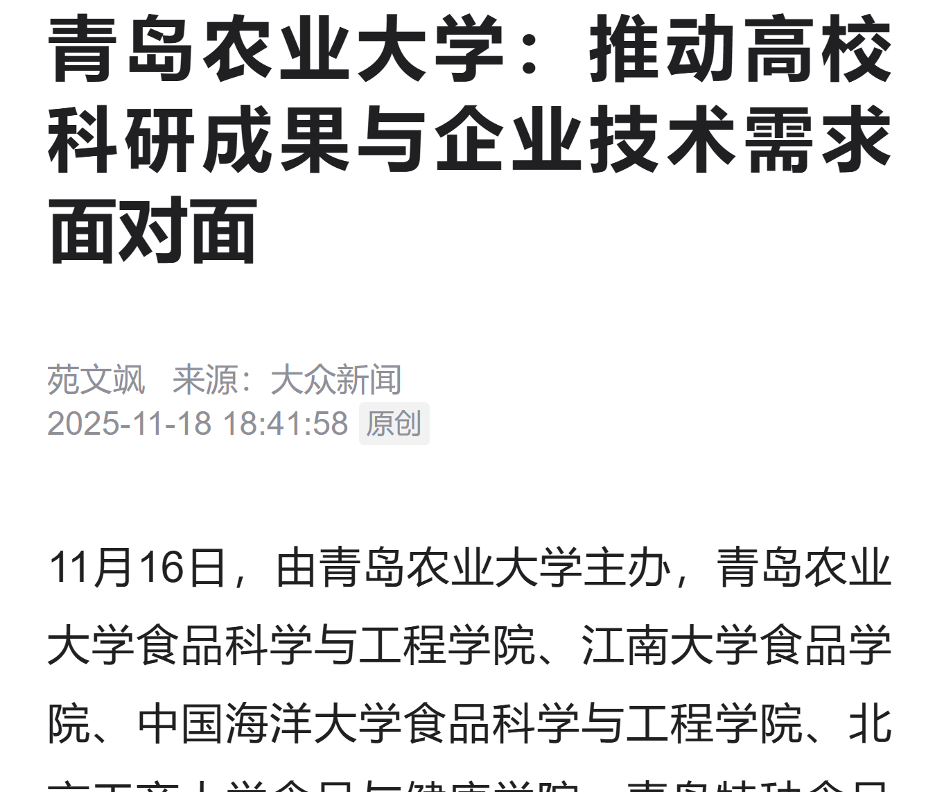 大众新闻:青岛农业大学推动高校科研成果与企业技术需求面对面