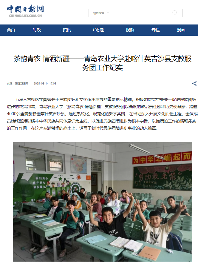 为深入贯彻落实国家关于民族团结和文化传承发展的重要指示精神,积极响应党中央关于促进民族团结进步的决策部署,青岛农业大学“茶韵青农 情洒新疆”支教服务团以高度的政治责任感和历史使命感,跨越4000公里奔赴新疆喀什英吉沙县,通过系统化、规范化的教学实践,在当地深入开展文化润疆工程。全体成员始终坚持以铸牢中华民族共同体意识为主线,以促进民族团结进步为根本宗旨,以饱满的工作热情和务实的工作作风,在这片充满希望的热土上,谱写了新时代民族团结进步事业的动人篇章。