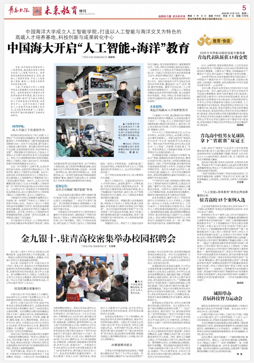 【编者按】10月13日,青岛日报以《金九银十,驻青高校密集举办校园招聘会》为题报道青岛农业大学举办秋季校园招聘会、供需见面双选会等,拓展优质岗位供给渠道,助力毕业生就业。