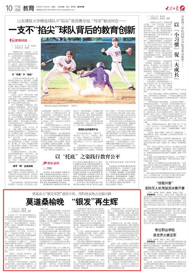 【编者按】11月25日,《大众日报》第10版教育版以《莫道桑榆晚 “银发”再生辉》为题,报道了青岛农业大学一批退休老教授组成“银发军团”,在学校构建的“1153”社会服务机制下,持续发挥专业特长,深入田间地头和企业一线,将农业科技成果应用于生产实践,有力助推乡村振兴的事迹。