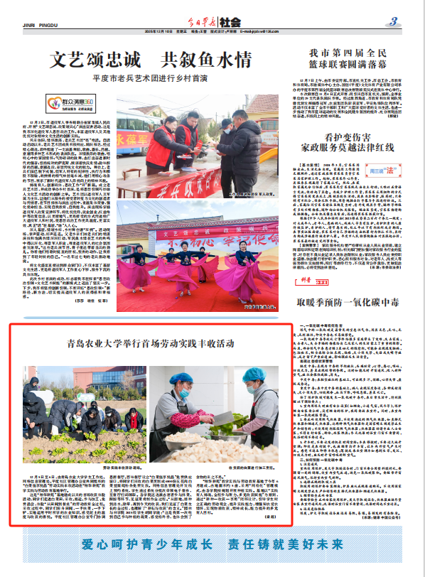 12月5日至6日,由学生工作处、网络信息管理处、平度校区管理办公室共同组织的“白菜佳享悦品”劳动实践丰收活动在“秾华耕苑”教学实践与劳动教育基地举行。