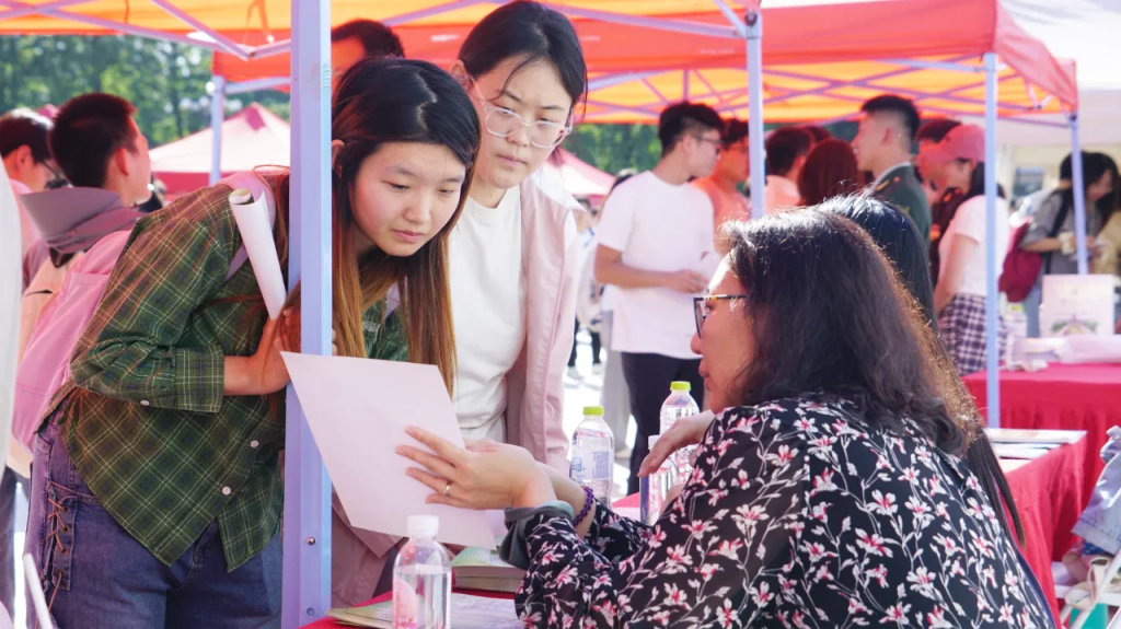 现场开展的“求职问诊”活动已连续举办10年,9位指导教师为毕业生提供一对一指导服务。征兵入伍、出国留学等政策咨询专区的志愿者们现场为毕业生进行政策解读。“职通未来”推优送岗直通车活动展示了部分优秀毕业生的推介海报。会场内,毕业生手持精心准备的简历,主动与招聘企业代表沟通,了解岗位要求、职业发展空间及薪资待遇。不少低年级学生提前到场“取经”,聚焦“行业用人标准”“专业学习方向”等问题向用人单位咨询,来自动漫与传媒学院编导2023级学生于瑞表示,自己上半年作为交换生到韩国东亚大学学习,半年时间提升了国际化视野和对外沟通能力。今天在现场发现很多跨国企业,更加坚定了就业信心。
