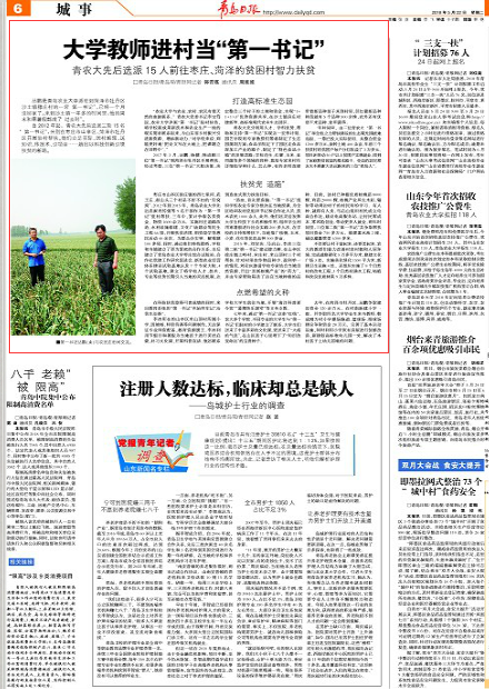自2012年起,青农大先后选派三轮15名“第一书记”,分别在枣庄市山亭区、菏泽市牡丹区开展驻村帮扶。他们立足实际、因村施策,送知识、传技术、引项目……趟出以科技创新引领扶贫的新路。
